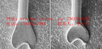 2.1.1、金線本身延伸力不足;這點不用多說,拉力測試可以檢測出是否達(dá)到金線規(guī)格書所標(biāo)稱的拉力值;金線本身延伸力不足也是與加工表面光滑度有關(guān),好比“封口膠帶”;邊緣不破損時可抗很強的拉力,倘若邊緣破損,則稍微用力即可拉斷,道理相似。